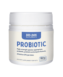Big Dog's Probiotic blend is a high-strength species appropriate formula with 20 billion good bacteria per 5g serve. Containing 7 host specific strains, this formula has been developed especially for canine health and vitality. With the added benefits of 5 digestive enzymes and a natural prebiotic, green banana powder, this combination helps the health of the entire digestive tract. This unique high-strength formula assists in healthy digestive function, a properly functioning immune system and the absorption and utilisation of nutrients from the diet as well as supporting recovery from gastric upsets and illness.